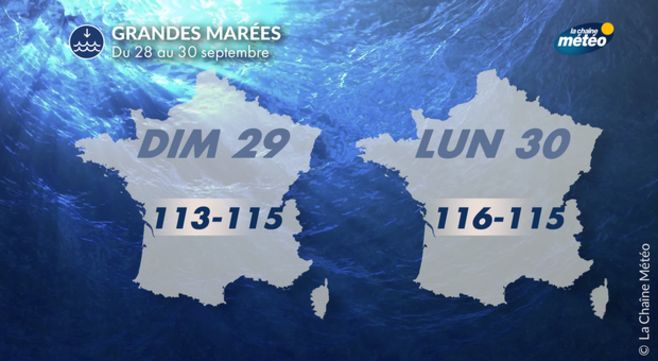 La mer est très forte avec des creux pouvant atteindre 4 à 4,5 m. Cette houle de secteur nord-ouest concerne surtout les littoraux de la Vendée au Finistère, de la Seine-Maritime, de la Manche, et surtout du Pas-de-Calais (côte d'Opale) avec un risque modéré de submersion au moment de la pleine mer. Attention au cours de vos promenades en bord de mer, avec ces vagues pouvant surmonter certaines digues d'autant plus facilement que nous sommes en période de grandes marées avec des coefficients 115 ce dimanche et 116 lundi.