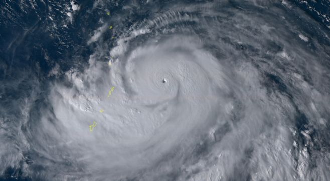 © Himawari-8 Le super-typhon Hagibis avec la structure de son œil "Pinhole" en raison de sa petite taille ce lundi.
