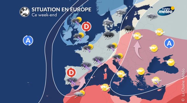 La France est sous l'influence d'une dépression britannique tout au long du week-end. Cette dépression nous apporte du mauvais temps, notamment à l'est et en Méditerranée où une autre dépression se creuse apportant beaucoup d'humidité et d'instabilité.