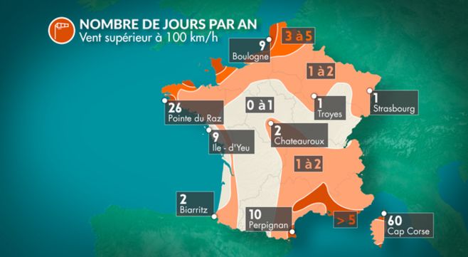 Cyrille Duchesne : Les caps exposés de la Manche et de l’Atlantique, ainsi que le Cap Corse sont les plus exposés aux tempêtes d’automne. Au cap de la Hague, on observe entre un et deux jours en novembre avec des rafales supérieures à 100 km/h. Le Cap Corse est le secteur le plus venté de France avec en moyenne 4 jours de tempête en novembre !
