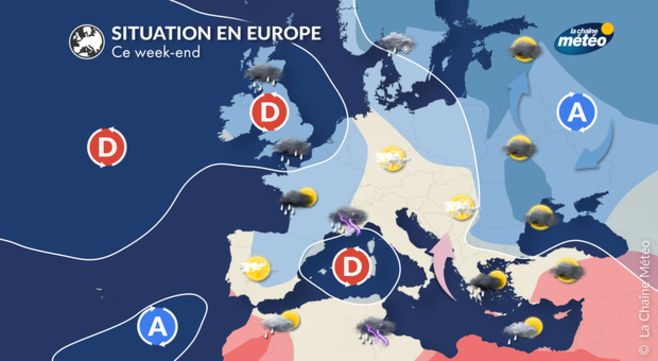 Après une semaine déjà perturbée, il vous est difficile d'échapper au mauvais temps pour votre week-end à cause d'une dépression centrée sur le proche atlantique. Elle apporte plusieurs bouffées pluvieuses sur nos régions, notamment sur le sud-est avec de forts orages et des inondations à redouter.