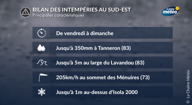 L’épisode méditerranéen qui a débuté vendredi se termine ce dimanche. C’est l’occasion de dresser un premier bilan de cet événement, remarquable par son intensité sur la Provence côte d'Azur et le nombre de régions touchées.