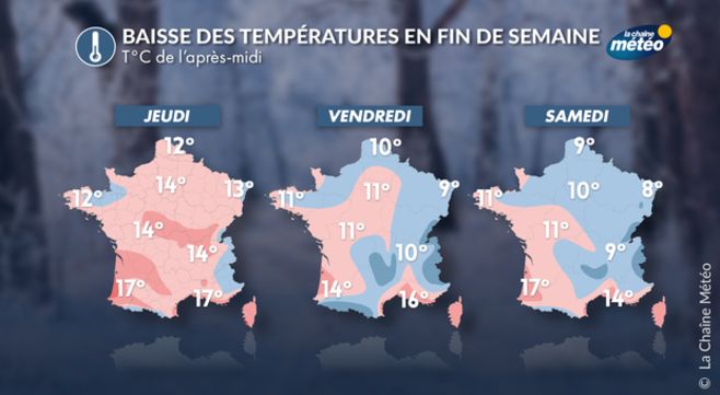 Après un début et un milieu de semaine particulièrement doux, les températures vont se rapprocher des normales saisonnières au passage d'un front froid à l'approche de votre week-end.