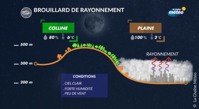 Enfin, la bonne nouvelle avec cette situation anticyclonique est le beau temps assuré à la montagne. Sans être obligé de monter très haut, les reliefs qui dépassent sont au-dessus des brouillards et des stratus, ces nuages bas qui peuvent avoir une épaisseur de 300 à 500 m. Les collines ardennaises et du Morvan peuvent donc émerger au-dessus de cette mer de nuages, offrant de somptueux panoramas. Bien souvent, étant donné l'air doux présent au-dessus de l'anticyclone, les températures sont plus douces en altitude que sous les brouillards des plaines : on assiste parfois à de curieuses inversions thermiques. En contrepartie, le temps reste sec et ne permet pas le passage des perturbations : dans ces conditions, il ne faut pas espérer le retour de la neige en montagne.