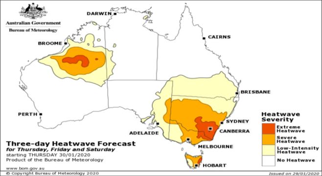 Les états de Nouvelle-Galles du Sud et de Victoria ont également été touchés par cette vague de chaleur. Pour la Nouvelle-Galles du Sud, les températures ont été très élevées avec 42,6°C à Mildura et 44,1°C à Mount Hope dans le sud-ouest de l'état.