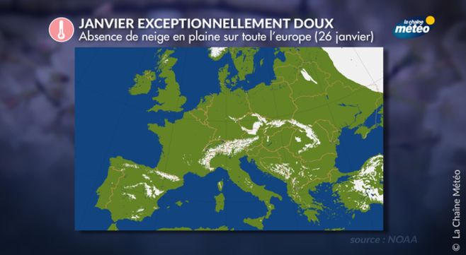 La couverture de neige est d'ailleurs quasiment inexistante en plaine sur le continent européen, si l'on excepte la partie nord de la Scandinavie.