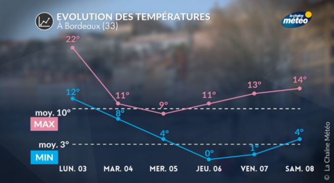 Après un début de semaine exceptionnellement doux au sud, les températures chutent de 10°C mardi avec une tempête qui se produit en Méditerranée. Par la suite, les conditions anticycloniques reviennent, assurant un temps très calme jusqu'à vendredi.
