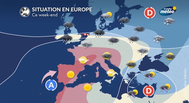 Pour votre week-end, l'amélioration amorcée cette fin de semaine se confirme avec le retour de l'anticyclone des Açores sur les deux tiers sud du pays alors que les conditions se dégradent au nord de la Seine surtout dimanche. C'est le printemps au sud de la Loire, avec des températures jusqu'à 8°C au dessus des moyennes de saison dignes d'un mois d'avril. Sur les Hauts-De-France, un coup de vent est attendu dimanche.