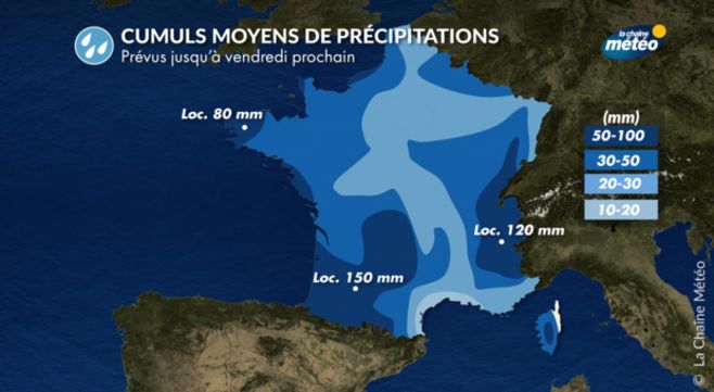 Le flux perturbé océanique se maintient toute la semaine prochaine avec un défilé incessant de perturbations. Tout l'hexagone sera concerné. Les cumuls pluviométriques seront conséquents et les chutes de neige abondante en montagne, dès 1300 à 1400 m d'altitude.