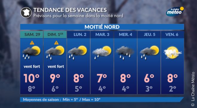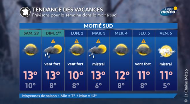 Dans la continuité des intempéries qui concernent la France de façon récurrente, la semaine prochaine s'annonce très perturbée avec des passages pluvieux marqués et des coups de vent quotidiens. Il faudra surveiller le risque d'inondations. Ces conditions météo ne sont pas favorables pour la dernière semaine des vacances scolaires d'hiver (zone A).