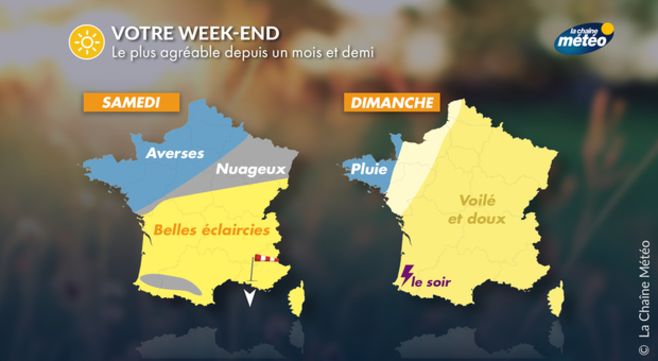 Grâce à l’extension ce samedi de l’anticyclone des Açores en direction des régions du sud-ouest puis du nord-est, le temps devient majoritairement ensoleillé sur le sud du pays. Ce beau temps se généralise une grande partie de la journée de dimanche, et grâce à une hausse marquée des températures le ressenti prendra des allures de printemps.