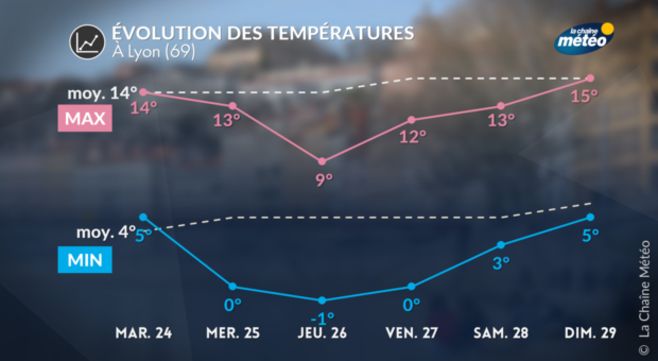 A la faveur de nuits dégagées et d'une masse d'air froid en altitude, les gelées sont fréquentes le matin du nord et des frontières de l'est jusqu'aux vallées d'Auvergne Rhône-Alpes. Localement, le thermomètre descendra jusqu'à -5°C. L'après-midi, les maximales s’échelonneront de 7 à 13°C au nord et dans l'est jusqu'à 14 à 17°C sur le bassin aquitain lundi et mardi avant de baisser aussi à partir de mercredi. Près de la Méditerranée, les maximales ne dépasseront pas les 12 à 13°C à cause des nuages et des averses, et du vent froid venant d'Italie. Ces températures seront inférieures de 2 à 5°C aux normales, souvent proches d'un niveau de mi-février dans l'est et au sud-est. A ce sujet, il fait donc plus froid cette semaine en Corse que pendant tout l'hiver écoulé.