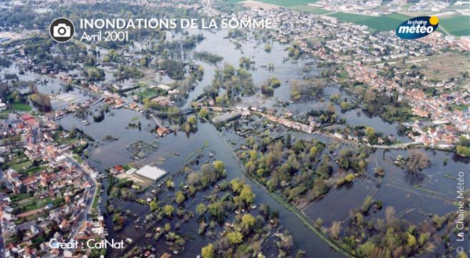 2001 : après 12 mois de précipitations exceptionnelles, les nappes phréatiques étaient saturées et l’eau remontait vers la surface, inondant durablement des plaines et vallées du nord de la France. La vallée de la Somme restera sous les eaux entre mars et avril. Abbeville et sa région seront sinistrées et plus d’un millier de personnes évacuées.