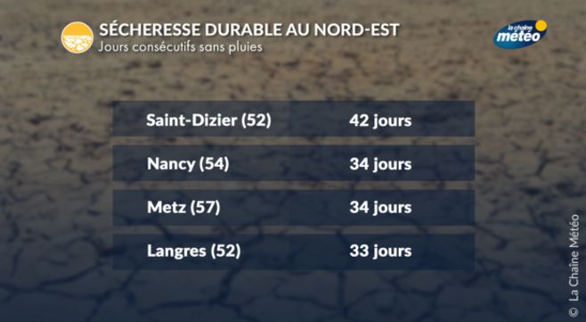 Sécheresse : aggravation du nord-est aux Alpes, 42 jours sans pluie à Saint-Dizier !