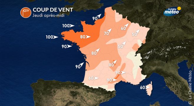 Le temps se dégrade très nettement sur le pays ce jeudi avec un coup de vent sur les régions du nord-ouest et des averses très fréquentes sur l’ensemble du pays sauf en Méditerranée.
