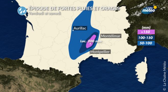 Météo du vendredi 12 juin : fortes pluies et orages du Languedoc au Massif central