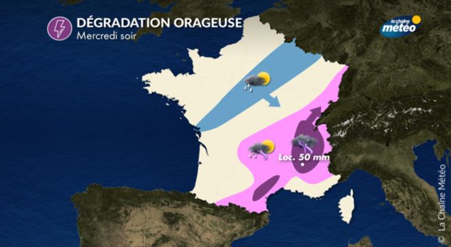 - une dégradation orageuse assez marquée en soirée au centre-est