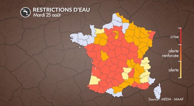 En cette fin d'été, 79 départements sont touchés par des restrictions d'eau une situation proche de celle de l'année dernière où 85 département avaient été concernés.