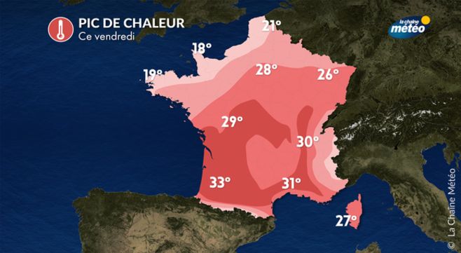 Ce vendredi est une journée pleinement estivale et chaude sur les trois quarts du pays. Au nord de la Loire, le temps reste cependant très nuageux avec quelques gouttes.
