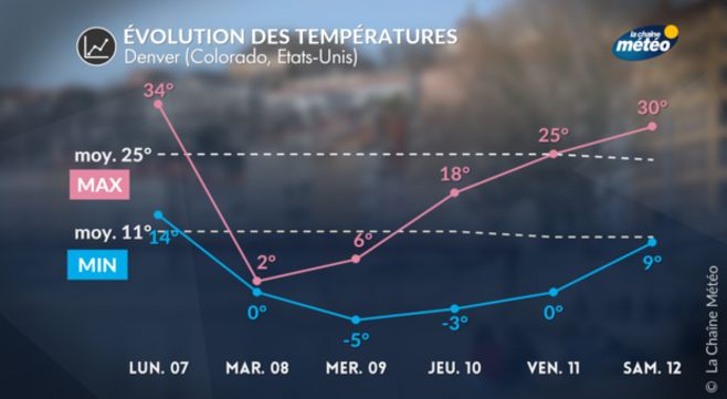 Ces brusques changements de temps n’ont rien d’exceptionnel dans les Montagnes Rocheuses à partir de la mi-septembre, où les premiers coups de froid peuvent survenir après une journée de plein été. En revanche, ce qui est remarquable, c'est la radicalité de ce changement. Alors que lundi il fera près de 35°C à Denver, soit 10°C supérieurs aux normales, la température maximale ne dépassera pas +3°C mardi, se situant 22°C sous des normales !
