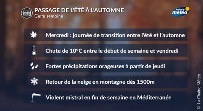 Après plusieurs semaines estivales, ce début d'automne est marqué par le retour des pluies, des orages et du vent, ce qui est plutôt une bonne nouvelle sur le front de la sécheresse dans le nord. Ce temps agité s'accompagnera d'une chute spectaculaire des températures.