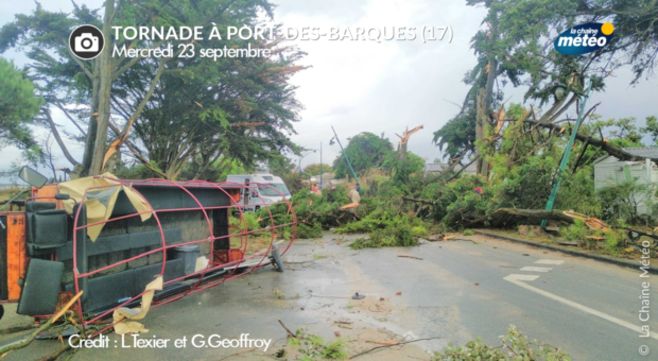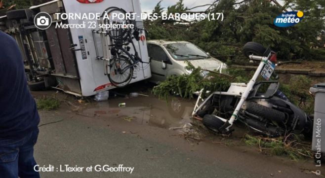 Vers 16h30 ce mercredi, plusieurs observateurs ont vu se former une trombe marine au large de l'île d'Oléron, en direction de l'estuaire de la Charente. Ce phénomène tourbillonnaire a fini par toucher terre dans le secteur de Port-des-Barques où d'importants dégâts ont été observés, sans faire de victimes.