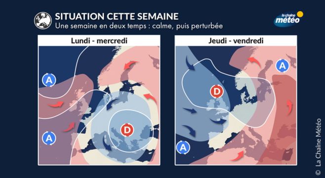 Cette semaine qui vient s'annonce en deux temps, avec une accalmie entre lundi et mercredi, et la reprise d'un temps plus perturbé par la suite.