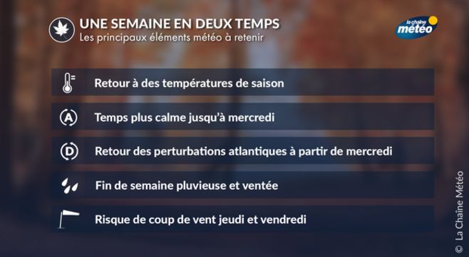 Après le week-end perturbé et très automnal que nous avons connu, avec de fortes pluies, de la neige en montagne, des vents tempétueux et des températures de Toussaint, la semaine qui vient s'annonce en deux temps, calme, puis nettement plus agitée.