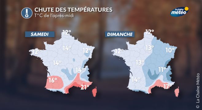 Après le passage d’un front froid peu actif entre vendredi et samedi, c’est un flux de nord-ouest qui se met en place sur le pays, faisant à nouveau chuter les températures.