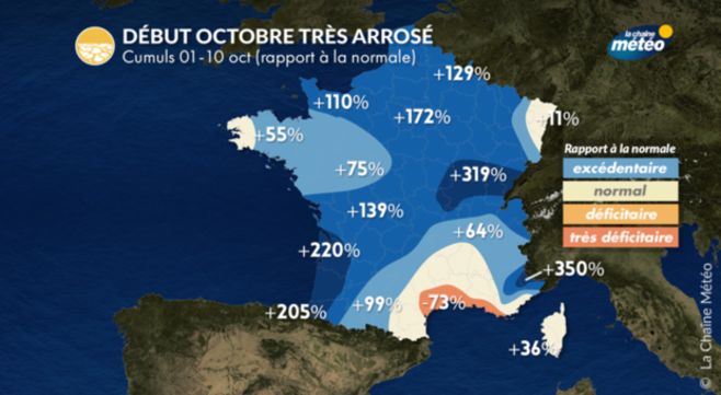 Un début octobre très arrosé mettant fin à la sécheresse de surface