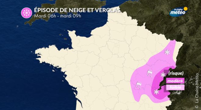 - le risque de neige ou de pluie verglaçante en début de journée du nord-est au centre-est