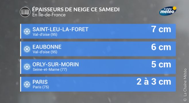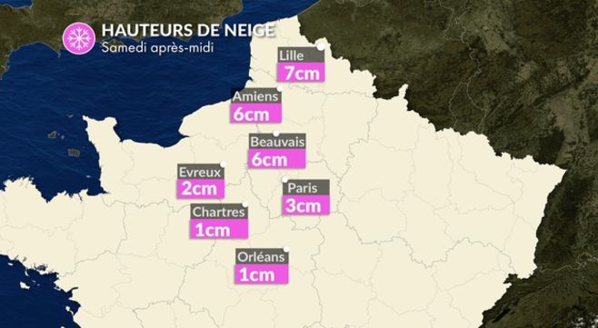 Bilan neige du week-end : 8 cm de neige à Lyon, 5 cm à Lille et 3 cm à Paris
