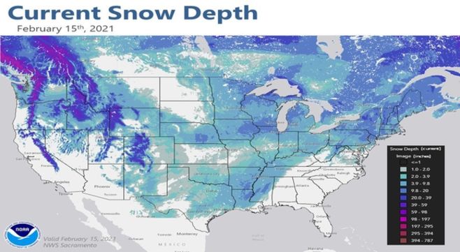 Neige bien visibile sur l'ensemble du #Texas qui est tout blanc ce 15 février ! Encore plus de 3,6 millions de clients sans électricité en soirée La neige a débuté en Ontario et se dirige vers le Québec, 30+ cm possible en Estrie, 20+ cm #Montreal #mm pic.twitter.com/nCXdHe1tHQ