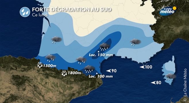 - de fortes pluies et un vent d'Autan soutenu en Occitanie.