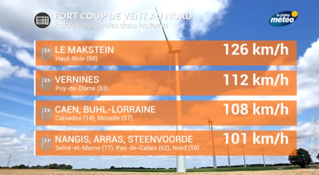 Tout au long de ce week-end, le vent a soufflé fort, et parfois même en #tempête en #Corse, dans l'intérieur des Alpes-Maritimes ainsi que sur les côtes de la Manche. Voici la liste non exhaustive des rafales les plus fortes observées. pic.twitter.com/ONhKwugz8l