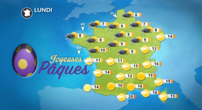 Le week-end de Pâques va renouer avec un temps nettement plus frais, mais il s'agira encore d'un temps sec et ensoleillé sur la plupart de nos régions. Une nette dégradation devrait se mettre en place pour le lundi de Pâques dès le matin sur les régions proches de la Manche puis sur le reste de la moitié nord dans l'après-midi avec de la pluie suivie de giboulées.