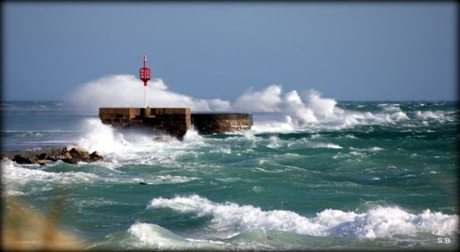 Photo : vagues par fort vent d'est ce dimanche dans la rade de Cherbourg (Manche)
