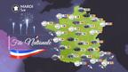 Ce samedi, des pluies modérées concernent dès ce matin la Bretagne, la Normandie et les Hauts-de-France. A l'avant de la zone perturbée, quelques averses circulent des Pays-de-la-Loire à l'Ile-de-France. Dans l'après-midi, les pluies et averses s'étendront vers le bassin Parisien alors qu'à l'avant le temps deviendra lourd et des orages éclateront en fin d'après-midi puis soirée entre le Grand-Est, la Franche Comté et le nord de Rhône-Alpes. En marge de ce temps instable, quelques nuages circulent du sud-ouest à l'Auvergne. Au sud, le soleil brille sans encombre dans une ambiance estivale avec des températures jusqu'à 34 °C dans le Gard.