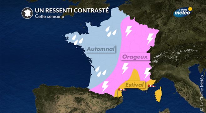 Après le coup de chaud lundi au sud, les températures baisseront mardi partout, retrouvant des niveaux de saison, voire inférieurs notamment dans le nord du pays. Il faudra attendre entre jeudi et vendredi prochain pour retrouver la chaleur. Près de la Méditerranée, mistral et tramontane feront effet de foehn, ce qui réchauffera l'atmosphère avec 32 à 35°C de maximum les après-midis.
