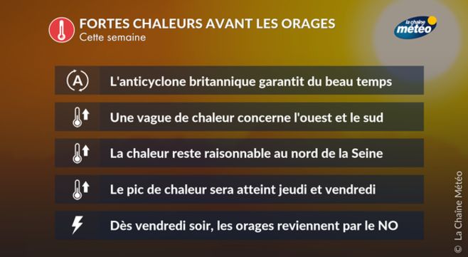 Météo de la semaine : fortes chaleurs avant l'arrivée des orages