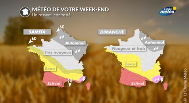 Pour votre week-end, qui correspond également au dernier week-end des vacances scolaires et de l'été météorologique, le temps est contrasté selon les régions avec des températures inférieures aux moyennes de saison sur la moitié nord. Le ciel nuageux et quelques gouttes donnent un ressenti quasi automnal au nord-est. Mais il n'y a pas d'intempérie à craindre, ce qui est une bonne nouvelle si vous êtes sur les routes des retours des vacances.