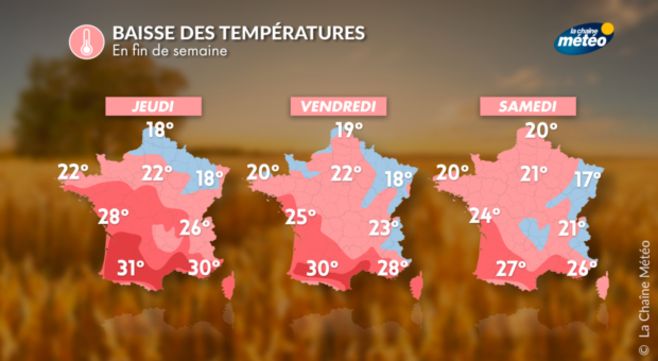 On retient donc que, si les températures sont orientées à la baisse sur les trois quarts du pays d'ici à dimanche, le temps restera sec et sans intempéries. Mais la présence d'une couverture nuageuse tenace au nord-est entraînera un ressenti parfois automnal sur ces régions.