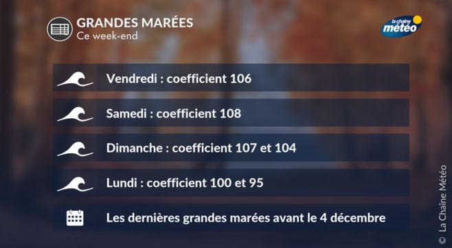 Le temps calme peut vous inciter à profiter des grandes marées, qui culminent au coefficient 108 ce samedi. Il n'y aura plus d'aussi grandes marées avant plus d'un an désormais. Soyez prudent au moment de la marée montante, qui peut vous encercler sur des bancs de sable ou de rochers.