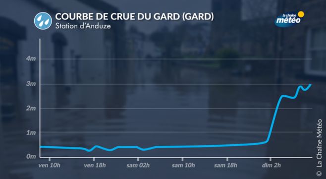La plupart des cours d'eau cévenols ont connu des réactions modérées. Quelques-uns sont entrés en crue, comme le Gardon et la Cèze, mais les débordements sont restés limités. Cette situation s'explique par des pluies qui n'ont pas pris de caractère orageux. Ces pluies régulières, d'intensité modérée à forte sans excès, ont donc limité des crues trop importantes.