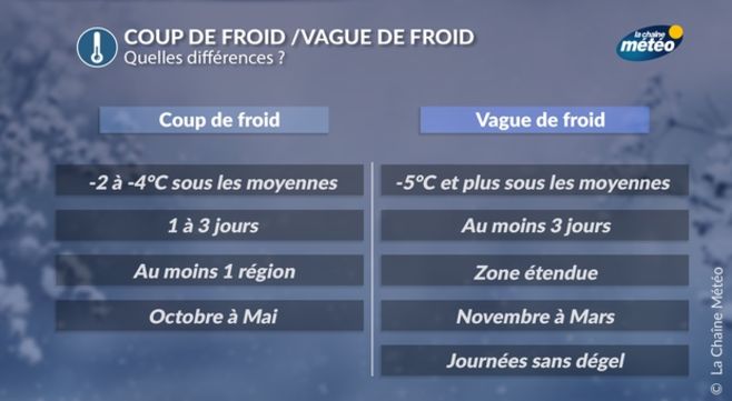Dans ce contexte, il est important de préciser qu'il ne s'agira pas d'une vague de froid sur la France car ce terme n'est employé que lors de périodes où les températures sont inférieures de 5°C pendant plusieurs jours sur le pays, avec de fortes gelées et parfois des journées sans dégel. Or, cela ne sera pas le cas. Nous parlerons d'un temps hivernal précoce et non exceptionnel, car de nombreux épisodes de froid et de neige bien plus marqués, et parfois récents, se sont produits en novembre dans les années passées. Même s'il est important de par le nombre de régions qui seront potentiellement concernées, il convient de relativiser ce coup de froid qui ne présente pas d'extrêmes météorologiques pour les températures. A noter que le terme "descente d'air polaire" indique la provenance de la masse d'air froid venant du pôle, mais ne signifie pas que les températures seront "polaires" pour autant sur la France. En effet, en circulant au-dessus de l'océan Atlantique et de la Manche, cet air se radoucira nettement.