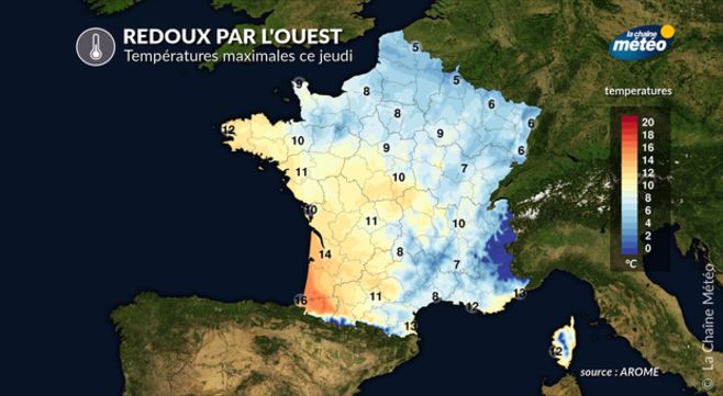 Le changement de temps se met peu à peu en place ce jeudi par l’ouest. Vous le sentirez surtout en raison de la douceur qui reviendra de l’océan, car les pluies se feront plutôt rares sous cette perturbation.