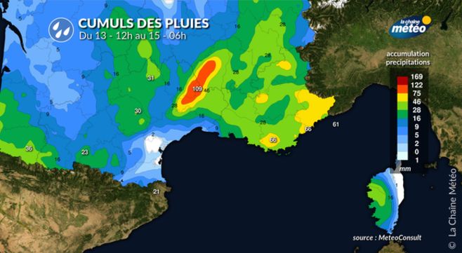 Cumuls de pluies dans le sud-est © La Chaîne Météo
