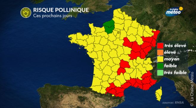 - Consultez la carte de vigilance des pollens sur le site internet du RNSA : www.pollens.fr
