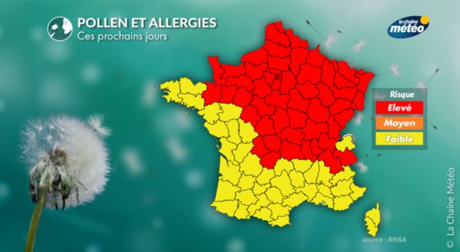 Comme le confirme le Réseau National de Surveillance Aérobiologique (www.pollens.fr), les pollens de bouleau passent à l'offensive sur les deux tiers nord-est de la France, en alerte rouge. Les conditions météorologiques sont pourtant encore favorables pour minimiser l'explosion pollinique ce week-end, avec des pluies qui ont plaqué les pollens au sol, et des températures en baisse ce week-end.
