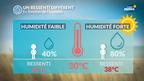 Avec des températures élevées et un taux d’humidité dans l’air qui deviendra élevé (plus de 70%), la température que vous pourrez ressentir sera parfois bien supérieure à la température réelle affichée par votre thermomètre.